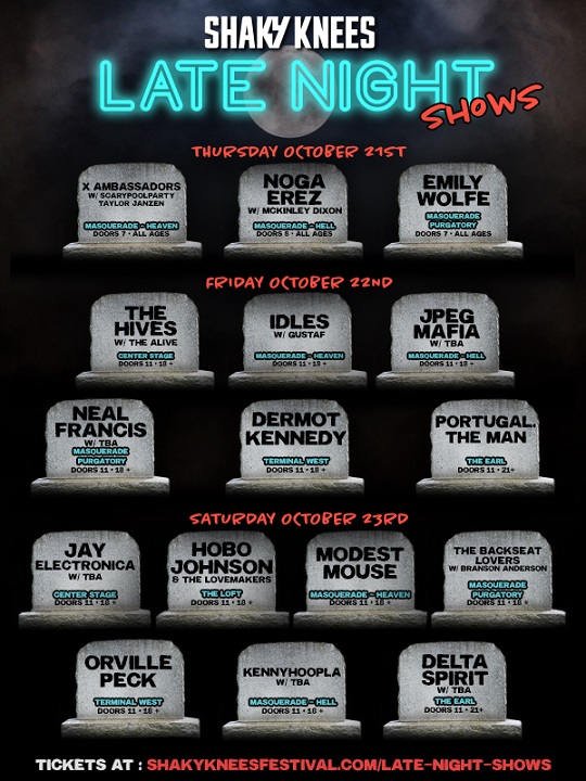 Additionally, those amazing yearly Late Night shows were announced today. So, to those fans wondering, the party is about to be bigger and better than ever. So, despite the losses, and they are heavy losses, fans need worry not. Shaky Knees has got you covered, and got you covered well. As the saying goes, the show must go on! Now, click the links for your Shaky Knees tickets or tickets to your favorite late night show. Do it, do it now! See you there.