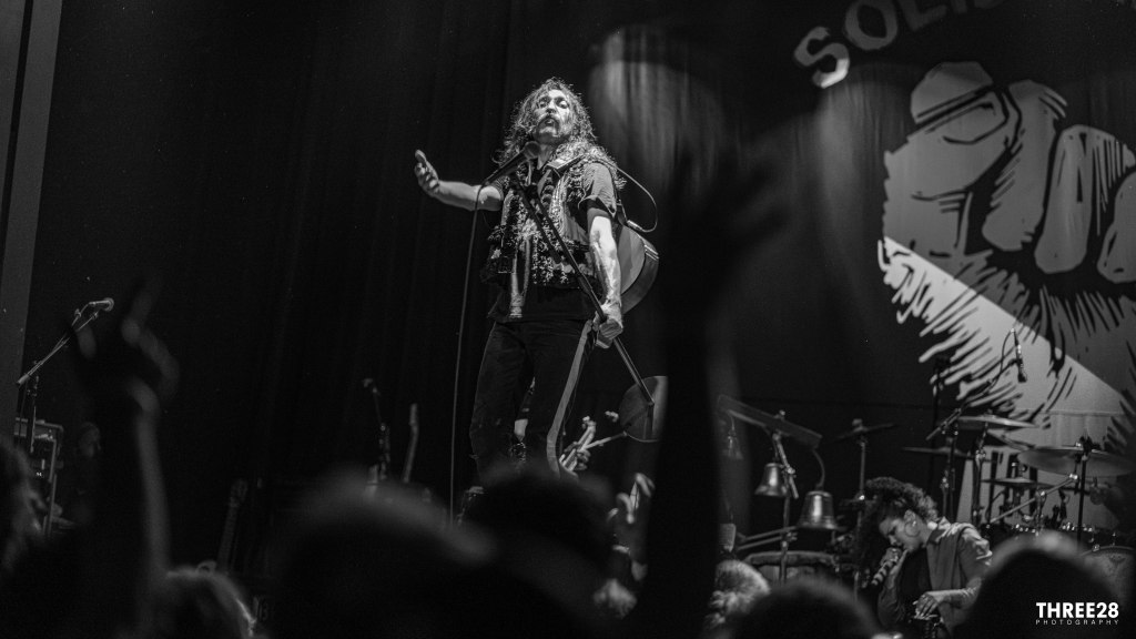 Naturally, the theme of the night is about Ukraine. Eugene Hütz seems consumed by the saga. How can a man seem so happy, angry and sad all at the same time? At moments it is noticeable how helpless he feels, at moments it is noticeable how enraged he feels, at times it is noticeable that he lives to perform and bring a smile to a face or cheer an extra skip into your dance. Throughout the evening, the man lives and breathes his profession. Never a dull moment, whether it be through splashing and chugging wine, performing a punk-riddled waltz, laying powerful and raspy vocals to some anthems, or even expressing his thoughts on that idiot at the helm of the Russian army. “You fascists are bound to lose, there’s people from every nation, marching side by side, they’re marching ‘cross the fields, where a million fascists died, you are bound to lose,” vociferously vocalizes Hutz to end the 2-hour jamboree.