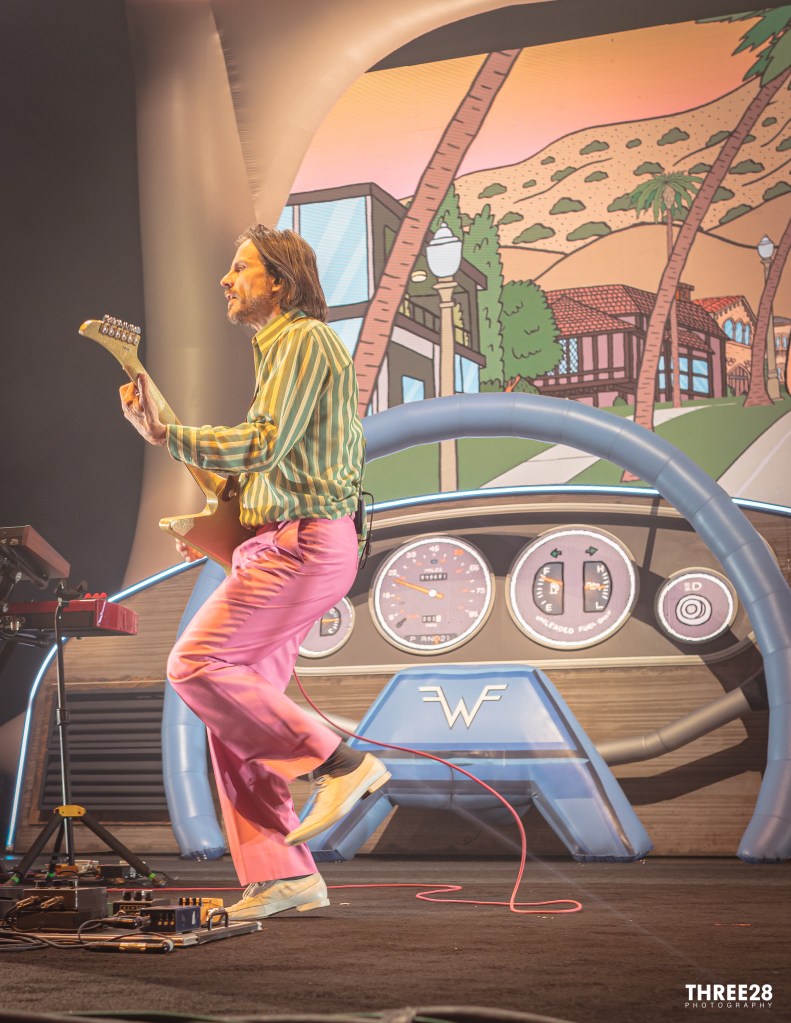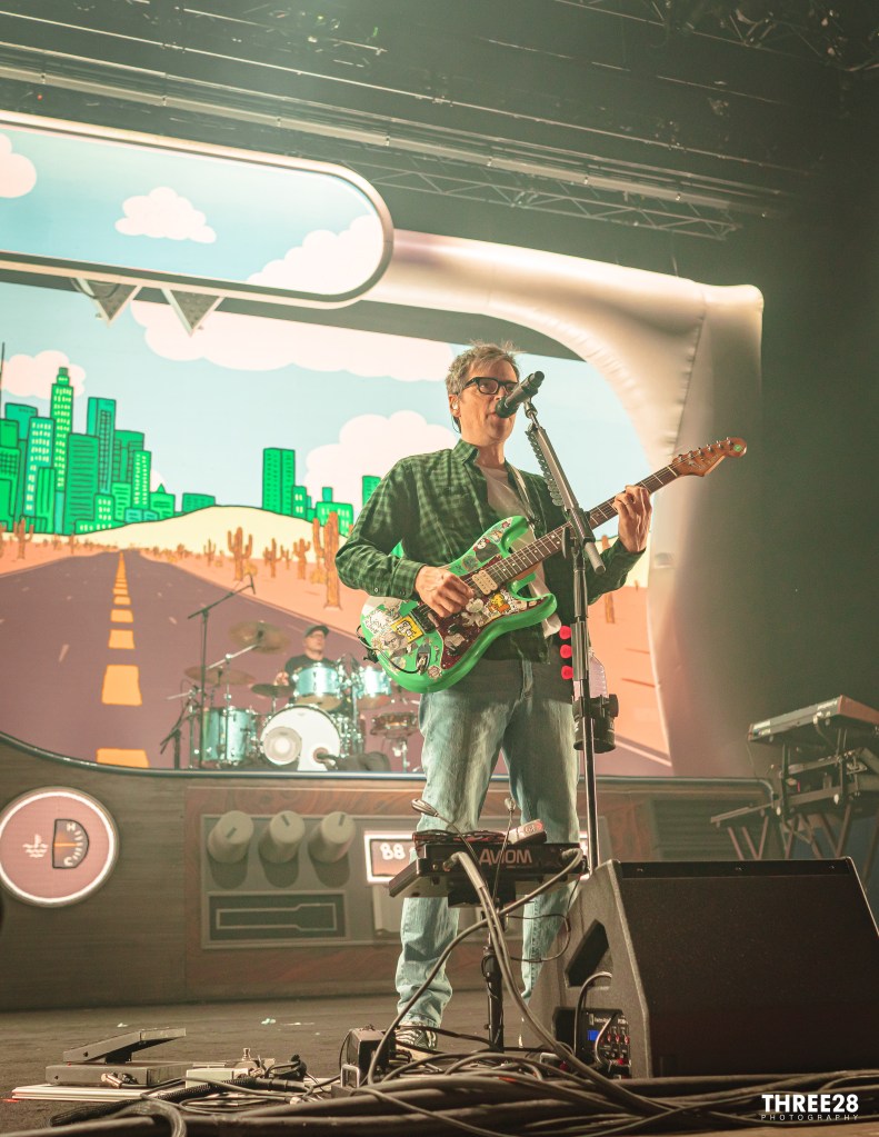 The strobes and backdrop graphics enhanced the overall experience. From vibrant and energetic lighting during upbeat numbers to softer hues during introspective moments, each ray perfectly complementing the mood to each song. The backdrop graphics stitching together a visual feast for the eyes, further submerging the audience into the world of a Weezer performance.