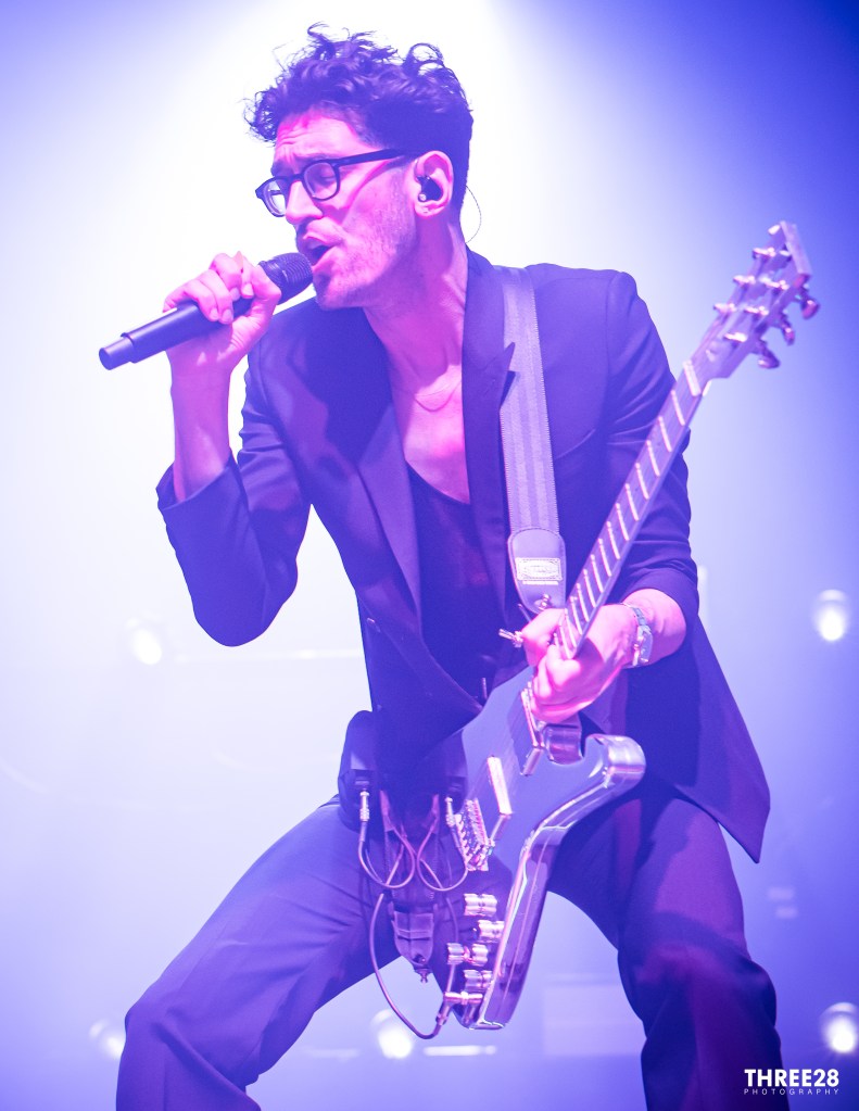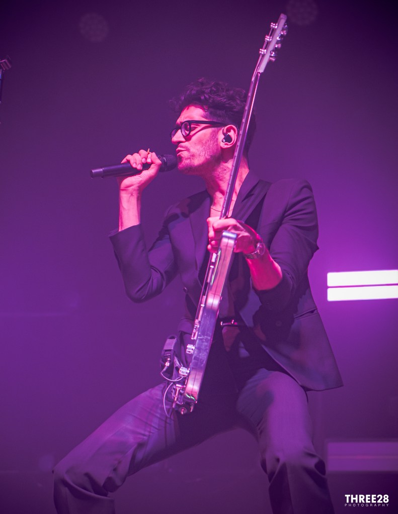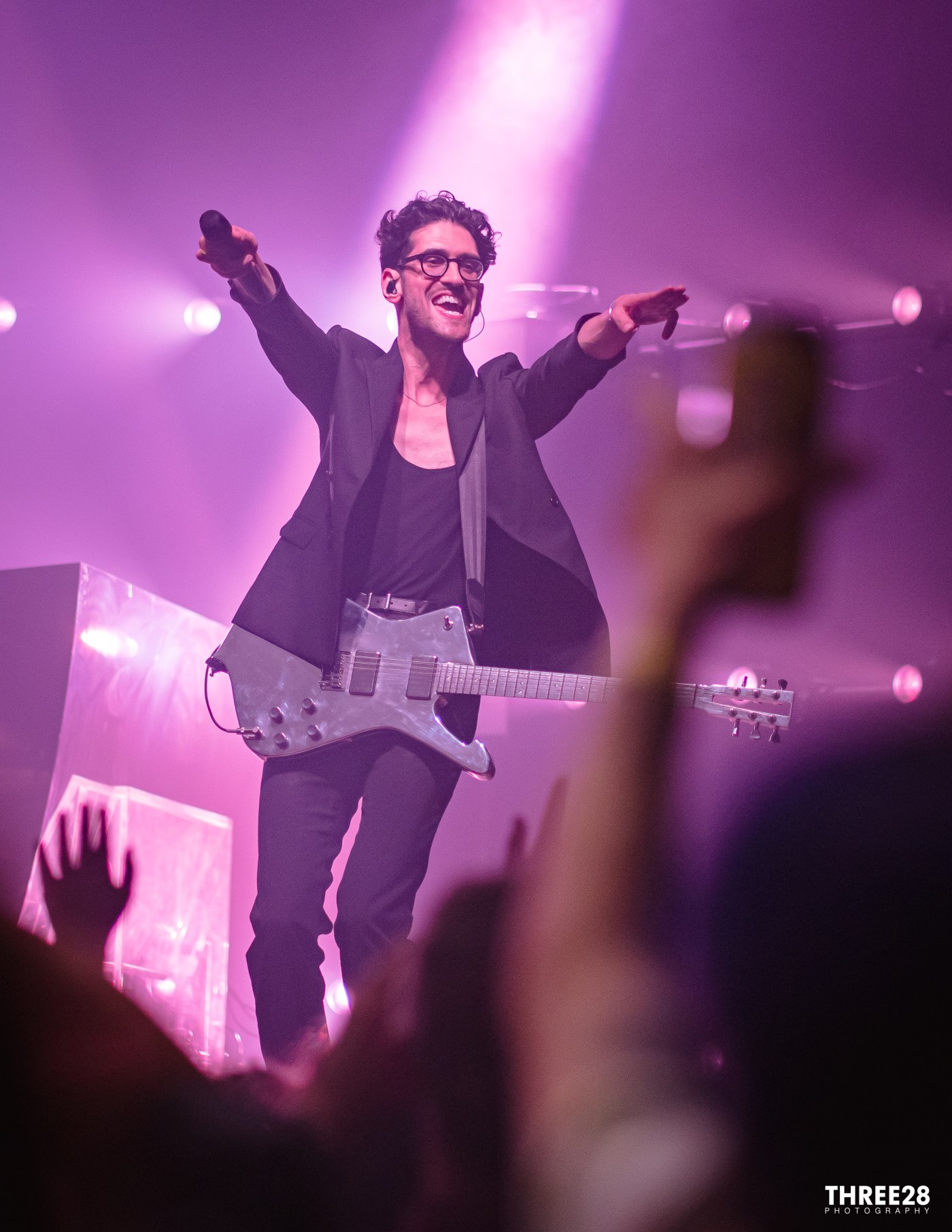 Dave 1 and P-Thugg, the dynamic duo at the heart of CHROMEO, took the stage with an undeniable charm and swagger that set the tone for the night. Dave 1, with his dapper attire and infectious smile, radiated a party-first mentality to showmanship. From the moment he stepped under the spotlight, he had the audience in the palm of his hand, moving to the rhythm of his guitar and vocals, all in support of their latest sonic offering.
