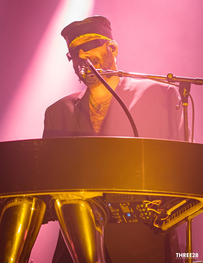 P-Thugg, the unsung hero of CHROMEO, proved to be the backbone of the entire operation. His seamless control over the strings and keys was nothing short of remarkable. What caught the eye was the unique setup of their keyboards, cleverly held up by mannequin legs in high heels for stands. It was a quirky touch that added an extra layer of personality to their performance and showcased their innovative spirit, perfectly in line with the fresh and innovative sound of “Adult Contemporary.”