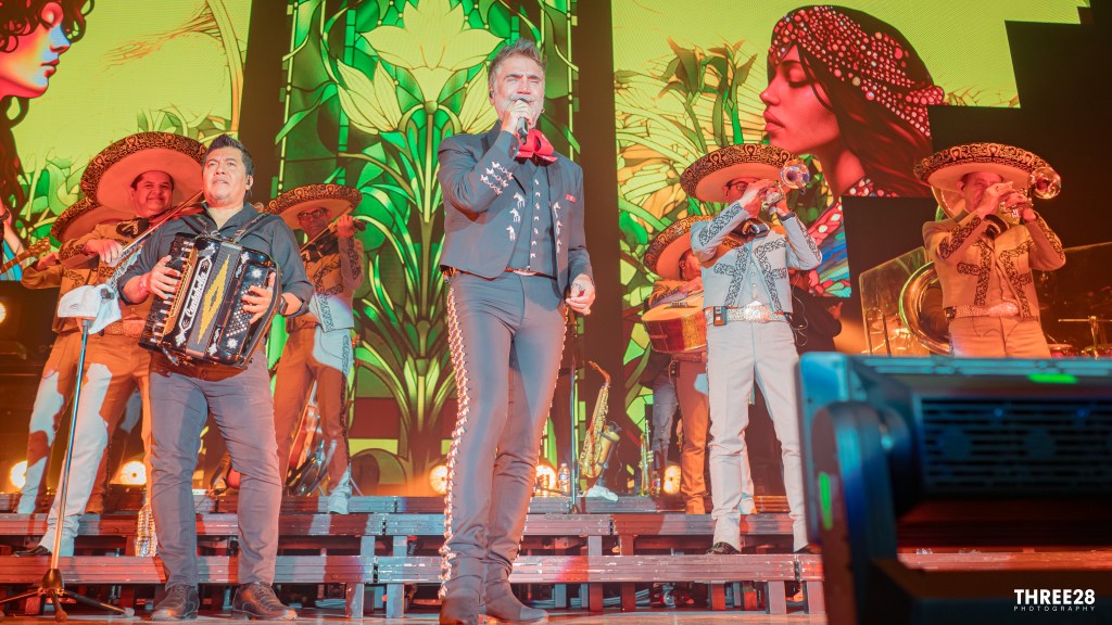 Fernández’s voice-work was nothing short of pristine. His crisp, powerful vocals cut through the air with precision and emotion, delivering each lyric with a raw, heart-stirring intensity. He effortlessly moved from tender ballads to upbeat mariachi numbers, showcasing his remarkable vocal range and versatility. Whether he was singing about love, heartbreak, or the beauty of his homeland, his voice conveyed the depth of feeling that has made him a beloved artist for decades.