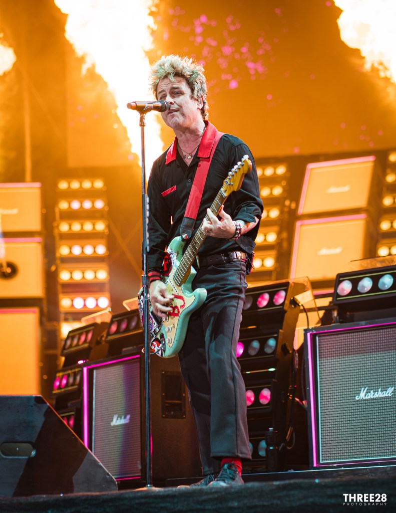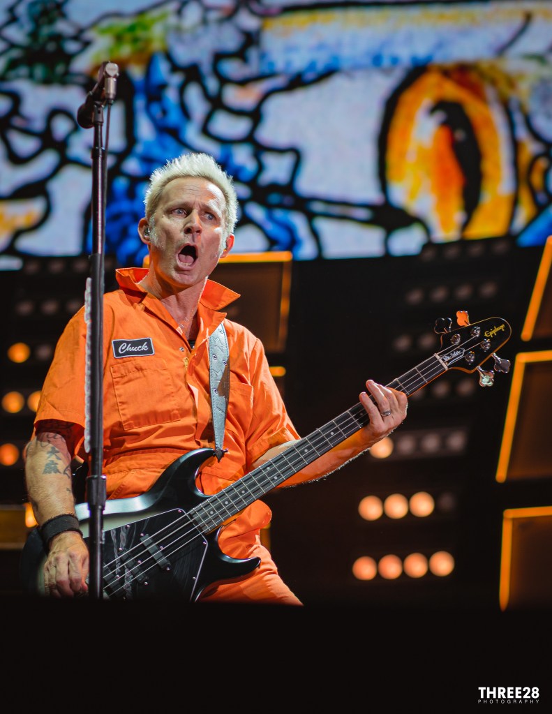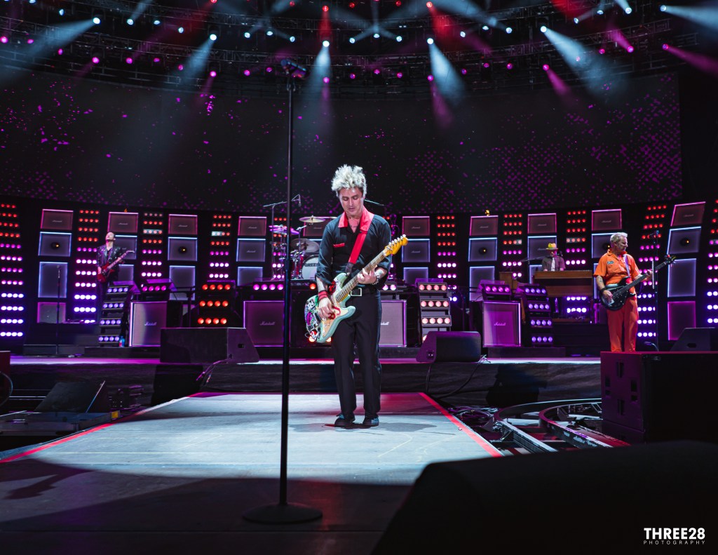 Each band member contributed uniquely to the night’s extravaganza. Billie Joe Armstrong, with his charismatic frontman presence, effortlessly commanded the crowd, engaging with fans and delivering vocal performances that were both raw and polished. Mike Dirnt and his bass lines were a driving force, providing the rhythmic backbone with a palpable intensity. Tre Cool and his drumming skills was nothing short of frenetic, his explosive fills and intricate patterns adding a percussive dynamism that elevated the performance to new heights. Collectively, the band exhibited an electrifying synergy, their interaction with one another and the audience creating a palpable sense of unity and excitement.