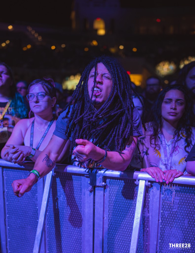 The energy intensified as the night progressed, peaking during the thunderous delivery of “In Keeping Secrets of Silent Earth: 3.” Here, the audience became a choir, joining in on the song’s now-iconic “oohhs” during the closing-chorus build. The collective voice of thousands crescendoed with the band, shaking the concrete bones of the gorgeous host venue. Several mosh pits opened and collided in rhythmic chaos during the track’s climax, as fans surrendered entirely to the band’s emotive propulsion. It was anthemic, euphoric, and fully communal — one of those rare concert moments where performer and audience exist in a singular, uplifted state.