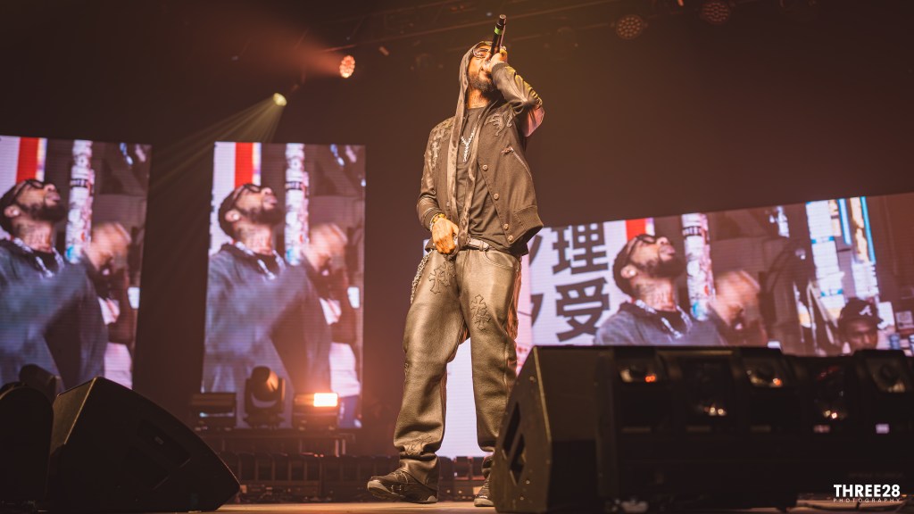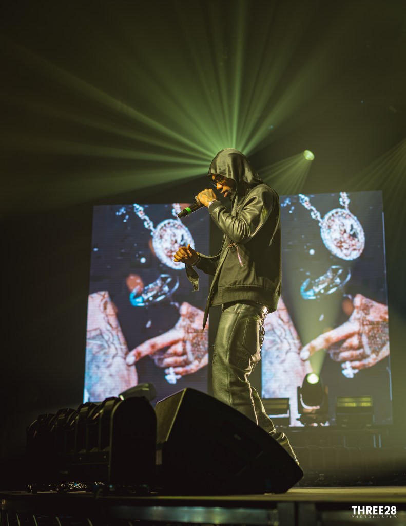 As the crowd gathered outside the venue, the atmosphere buzzed with excitement. Fans, predominantly teens and young adults, donned streetwear staples — think oversized hoodies, distressed jeans, and the ever-popular Air Jordans. The air was thick with anticipation, and the line snaked around the block as concertgoers eagerly awaited entry. Inside, the energy was palpable. The crowd’s enthusiasm was infectious, with fans rapping along to every lyric, their phones raised to capture the moment, creating a sea of glowing lights in the darkened venue.